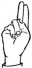 На ћирилици написано МИЛИЈАН ВЕЛИМИРОВИЋ састоји се из 18 слова [?]. Исписано ћириличном једноручном азбуком за глувонеме: